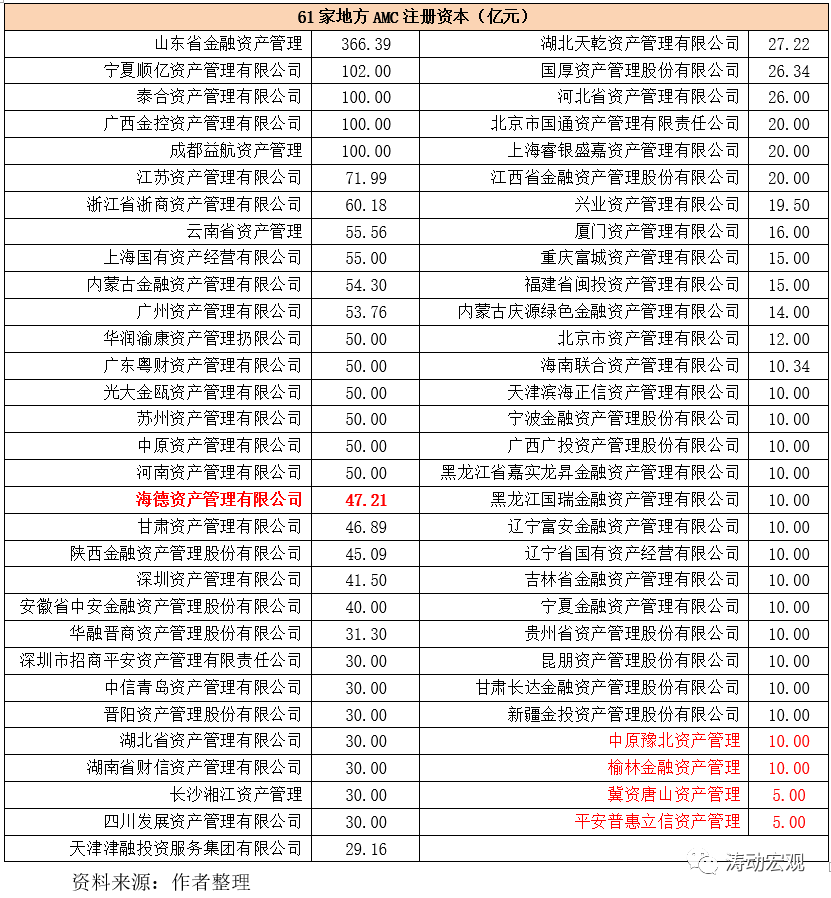 (1)2015年2月28日成立的吉林省金融資產(chǎn)管理因大股東于2020年4月被最高院判決解散。不過(guò)2021年2月吉林省盛融資產(chǎn)管理有限公司獲批從事金融企業(yè)不良資產(chǎn)批量收購(gòu)業(yè)務(wù),算是填補(bǔ)了吉林省地方AMC的空白。