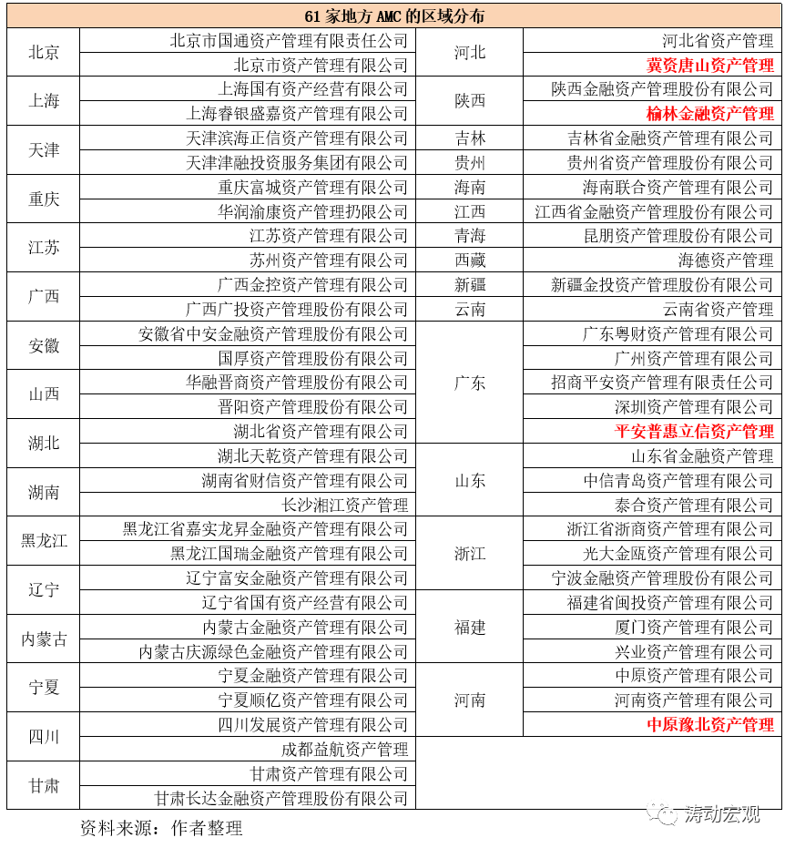 (2)另有15個(gè)省級(jí)地區(qū)各擁有2家(合計(jì)30家),吉林、貴州、海南、江西、青海、新疆、云南與西藏各擁有1家地方AMC。