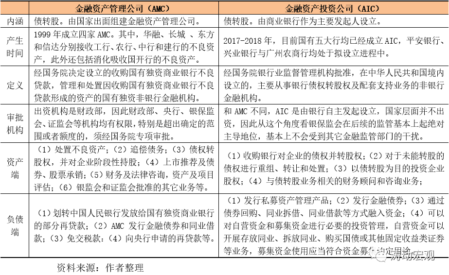 1、金融AMC與金融AIC的本質(zhì)都是為了債轉(zhuǎn)股和化解風(fēng)險(xiǎn),也即降杠桿。