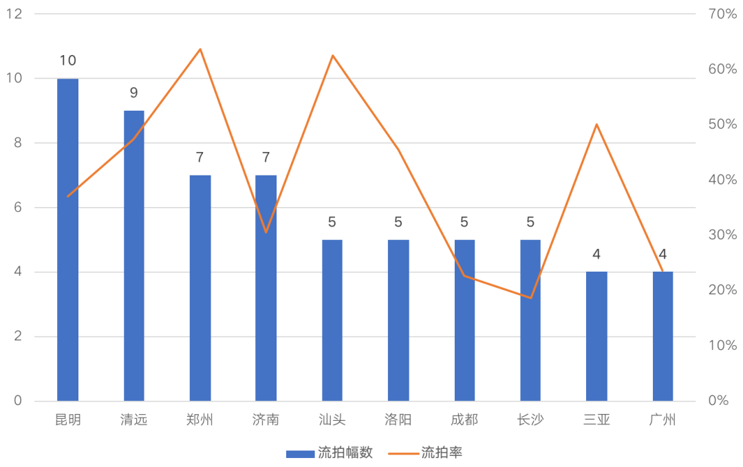 重點城市中土地流拍幅數(shù)TOP10城市
