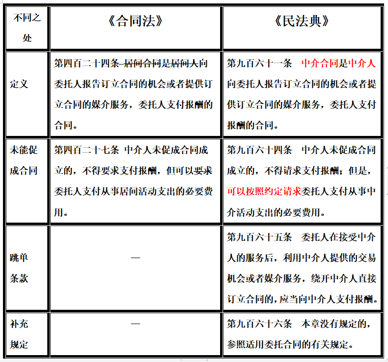另一種情況則是委托人在接受中介人的服務(wù)后,利用中介人提供的交易機(jī)會或者媒介服務(wù),繞開中介人直接訂立合同(即跳單)。《民法典》的出臺彌補(bǔ)了跳單條款的法律空白,直接否定了跳單行為的正當(dāng)性,即使中介合同中沒有關(guān)于跳單條款的規(guī)定,委托人仍然需要為此支付中介費(fèi)用。所以委托方需要特別注意,目前發(fā)生跳單情況,委托人需要支付中介報(bào)酬,當(dāng)然,在該項(xiàng)規(guī)定之外,雙方也可以就跳單行為的違約責(zé)任進(jìn)行具體規(guī)定,以確保合同能夠順利履行。