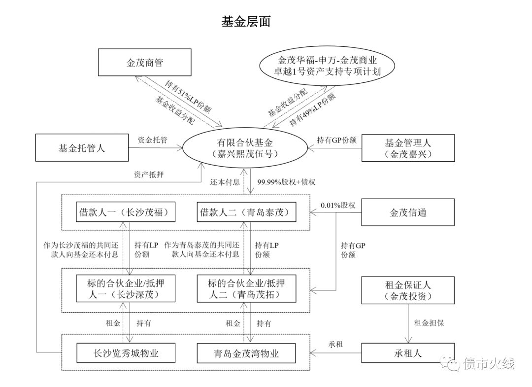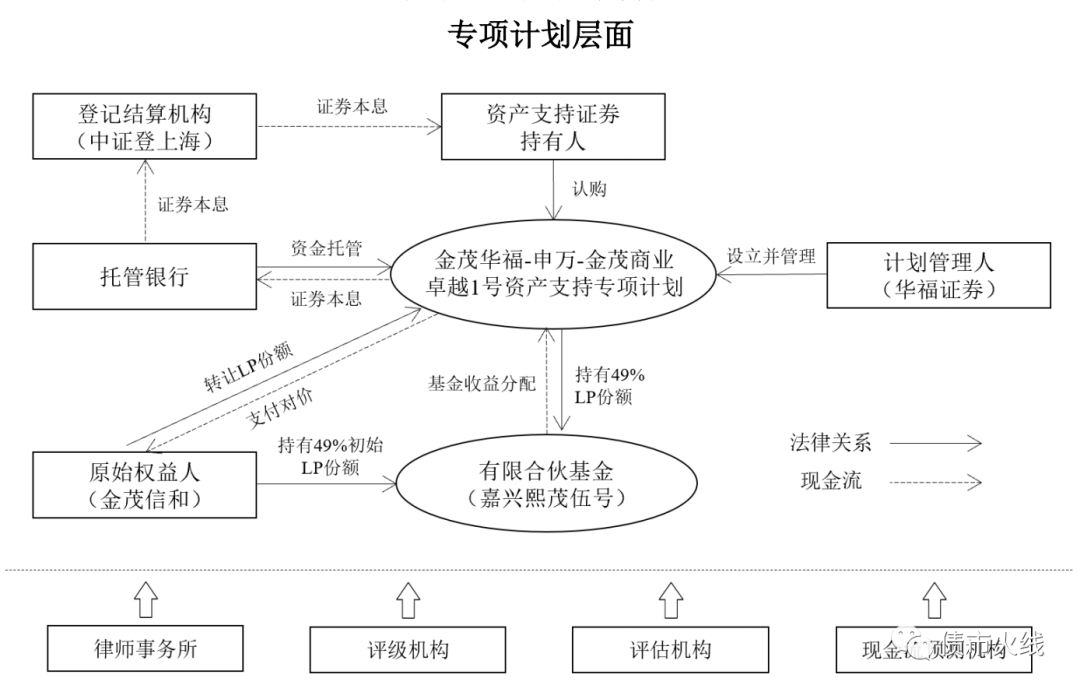 這個專項計劃實質就是將一個表外項目公司納入表內,專項計劃承接了一部分LP份額,專項計劃資產支持證券規模成為了金茂報表上的少數股東權益。