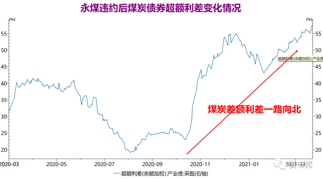 第三階段是永煤違約之后的市場情緒主導階段。2020年11月永煤的無征兆違約,摧毀了過剩產能行業債券的投資人信心。大家都害怕持倉中的X煤會成下一個永煤,信評紛紛出庫,公募基金在二級市場不計成本的砍倉,影響至今仍未消除。