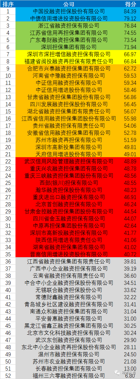 最近開始學(xué)習(xí)擔(dān)保行業(yè),初步對(duì)有債券擔(dān)保業(yè)務(wù)的擔(dān)保公司進(jìn)行了打分、排序及分檔。今晚簡(jiǎn)單聊兩句,拋磚引玉。