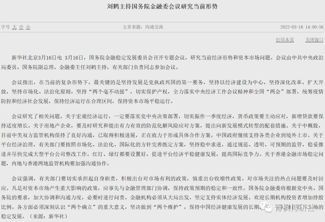 原標題: 金融委釋放強烈維穩信號