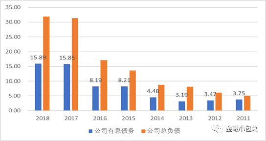 圖四:ST中新公司總負(fù)債和有息債務(wù)規(guī)模趨勢(shì)