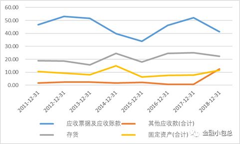 公司資產(chǎn)結(jié)構(gòu)中流動(dòng)性資產(chǎn)占絕大部分,2018年公司流動(dòng)資產(chǎn)占總資產(chǎn)比高達(dá)86.03%,而公司流動(dòng)性資產(chǎn)中主要由應(yīng)收票據(jù)和應(yīng)收賬款、其他應(yīng)收款構(gòu)成,且這三項(xiàng)的比例逐年上升,這反映出公司在產(chǎn)業(yè)鏈中的弱勢(shì)地位。