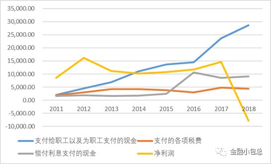 以ST中新為例,這五年來(lái)其凈利潤(rùn)并沒(méi)有顯著提高,但各種顯性成本,如人工成本、各項(xiàng)稅費(fèi)和利息支出卻急劇增加,尤其是人工成本,ST中新用工成本從2011年的人均月薪2469元增長(zhǎng)到了2018年的11613元,7年間增長(zhǎng)了五倍,而其從事的電子業(yè)代工制造本身是毛利率極低的行業(yè),對(duì)成本非常敏感。