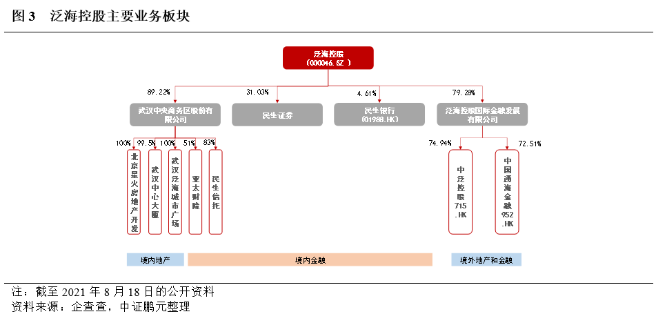 泛??毓?,成立于1989年,前身為南海石油深圳開發(fā)服務(wù)總公司物業(yè)發(fā)展公司,于1994年在深圳證券交易所上市。截至2021 年3月末,公司控股股東為中國泛海控股集團有限公公司(簡稱“中泛控股”),實際控制人為盧志強,直接和間接持有公司71.23%的股份。