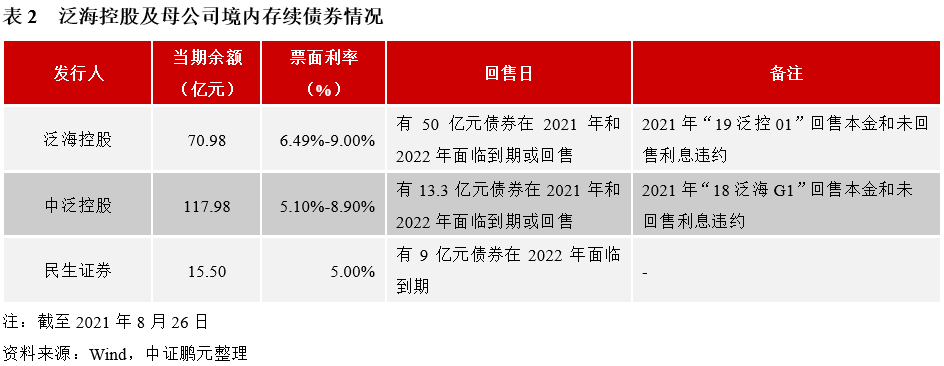 第五,受政策影響,民生系對泛海系支持能力下降。長期以來,民生系是泛海系重要的資金支持方,截至2020年末,泛海系在民生銀行的貸款余額超200億元。但受監(jiān)管政策和信用風(fēng)險事件影響,民生系對泛海系的支持力度有所弱化,其中,2021年7月公司控股股東中泛控股持有的民生銀行股份因債務(wù)糾紛被司法凍結(jié)和拍賣,但隨后與債權(quán)人達(dá)成協(xié)議,撤銷上述拍賣。中泛控股及其關(guān)聯(lián)方持有民生銀行可行使表決權(quán)的股份數(shù)合計約30.40億股,占該行總股本的6.94%,其中87.09%已被質(zhì)押,此次遭司法凍結(jié)并拍賣的股份占其持有股份比例為12.79%。此外,根據(jù)公開信息,民生信托、民生財富投資管理有限公司和泛海投資集團有限公司基金類資金池產(chǎn)品基本已全線延期兌付,規(guī)模超過300億元。