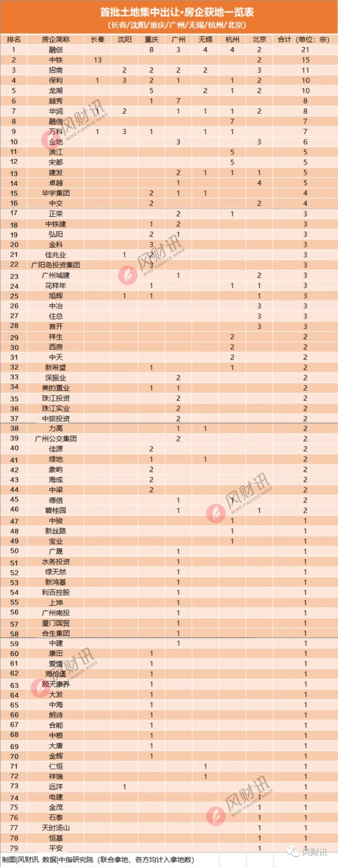 全局來看,首批集中拍地結(jié)果中,廣州27家企業(yè)拿地,國企/央企14家,民企13家;無錫16宗土地中,國企/央企6宗,頭部房企競得10宗;重慶32家企業(yè)拿地,國企/央企有12家,民企20家。