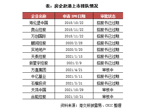 本月仍然沒有新增房企向港交所遞交招股說明書,因此截至2022年2月底,在港交所在遞交過招股書但仍未成功上市的房企仍為12家,其中有9家房企在招股書過期后都沒有更新招股書,未來是否會繼續上市進程還有待觀察。