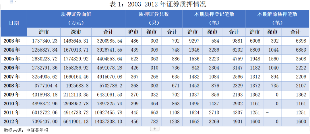 由上表可以看出滬市的質押量和質押規??傮w上略多于深市,但2011、2012深市證券質押數量大幅上漲。這時候市場上的股票質押基本都屬于場外質押,股票質押相當于貸款的一種增信手段。
