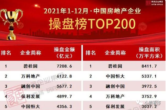 據(jù)克而瑞數(shù)據(jù),2021年碧桂園以7208.6億操盤金額和8411.7萬平方米操盤面積,第五年在房企中稱霸。