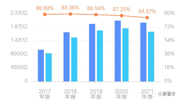 截至2021年底,碧桂園總資產(chǎn)為19483.65億元,總負(fù)債16477.38億元,凈資產(chǎn)3006.27億元,資產(chǎn)負(fù)債率84.57%。