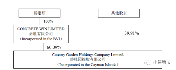 從股權(quán)結(jié)構(gòu)看,碧桂園的控股股東為必勝有限公司,持股比例為61.25%,公司實際控制人為楊惠妍。