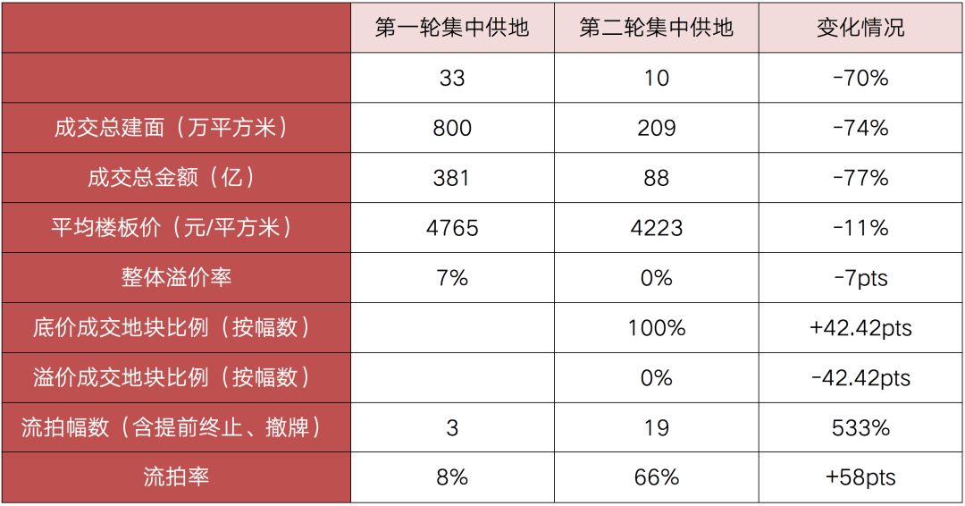 表:長(zhǎng)沙兩輪集中供地成交情況對(duì)比
