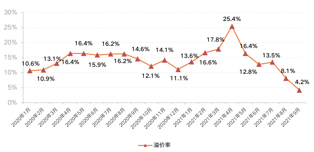 圖:CRIC監(jiān)測(cè)城市經(jīng)營(yíng)性用地溢價(jià)率走勢(shì)圖
