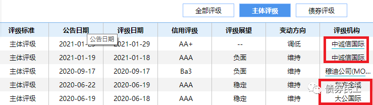 一、主體信用評級下調