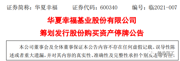 1月28日,華夏幸福發布《籌劃發行股份購買資產停牌公告》,籌劃以發行A股股份的方式購買朗森汽車產業園開發有限公司(以下簡稱“朗森產業園”)持有的天津玉漢堯石墨烯儲能材料科技有限公司(以下簡稱“天津玉漢堯”)33.34%股權。