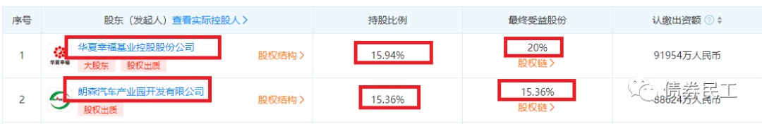 需要注意的是,華夏幸福和朗森產業園分別為廊坊銀行股份有限公司的第一大股東和第二大股東,直接持股比例分別為15.94%和15.36%。