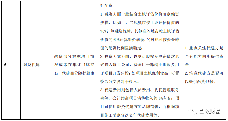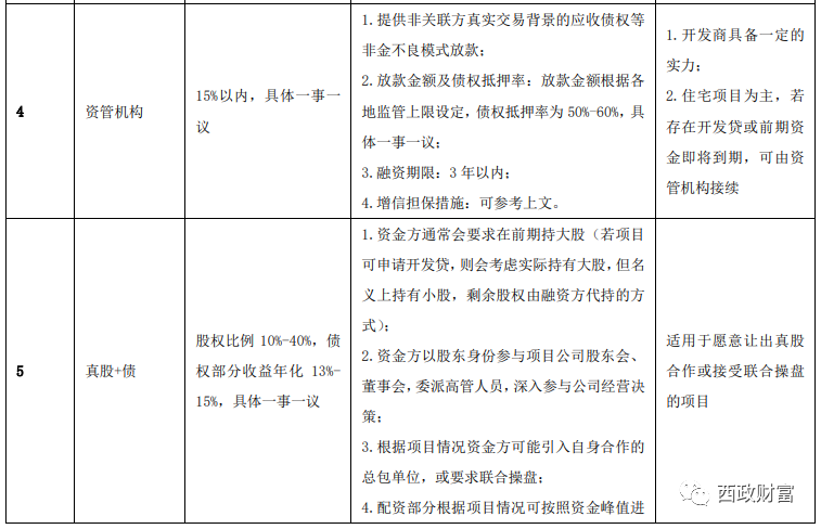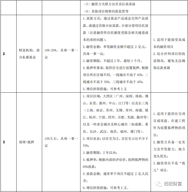 不同的資金機構對融資主體及項目的要求有所差別,所謂的“高風險”則對應“高收益”,而目前市場上能操作中小開發商融資的資金機構的成本要求一般都在年化16%-20%以上,因此對于中小開發商而言,面對項目收益可能被融資機構“吃凈”的問題,融資成本肯定需要充分平衡和斟酌。