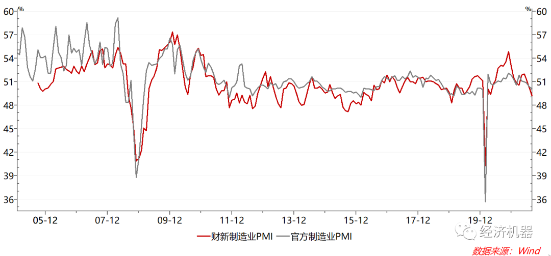 圖1、制造業PMI:官方和財新
