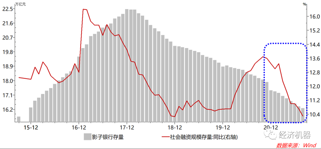 圖3:影子銀行存量規模和社會融資總額存量同比增速
