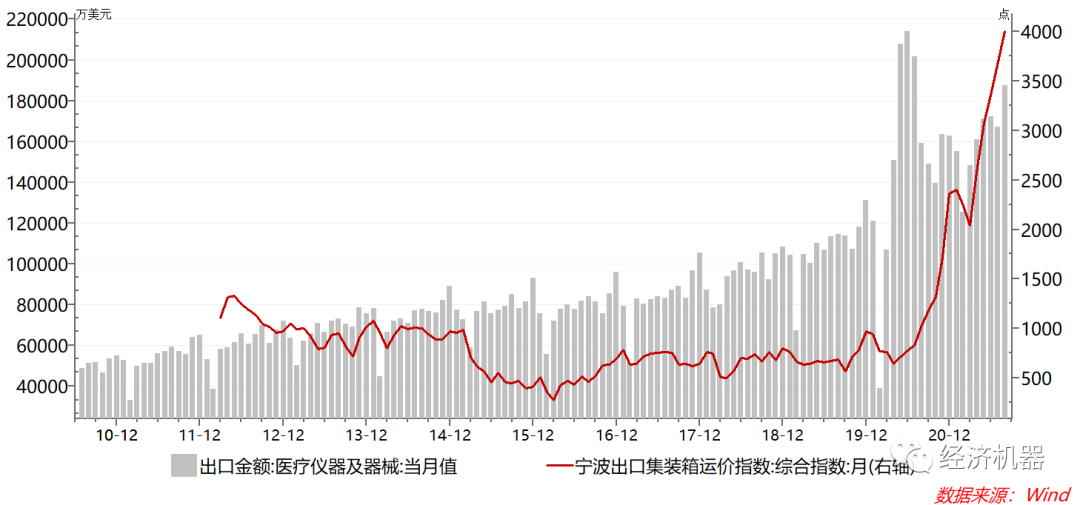 圖5、寧波出口集裝箱價格指數和我國醫療器械出口