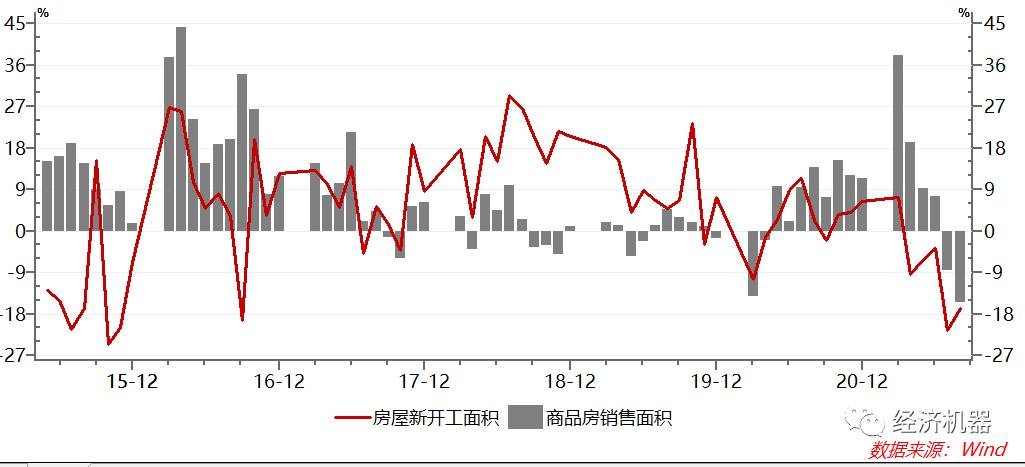 圖7:房地產銷售和開工:當月同比