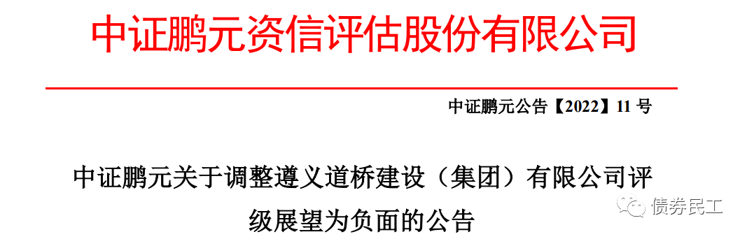 原標題: 遵義道橋評級展望調整為負面!