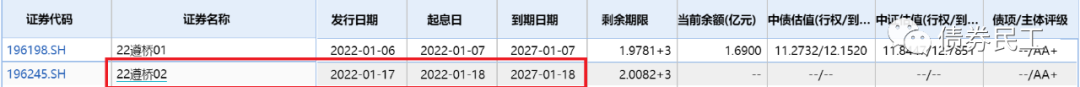 遵義道橋最近一次債券發行是在2022年1月6日發行,1月7日起息的“22遵橋01”,發行規模為1.69億元。值得關注的是,遵義道橋擬于2022年1月17日發行“22遵橋02”,這將是評級展望調整為負面之后的第一次債券發行。