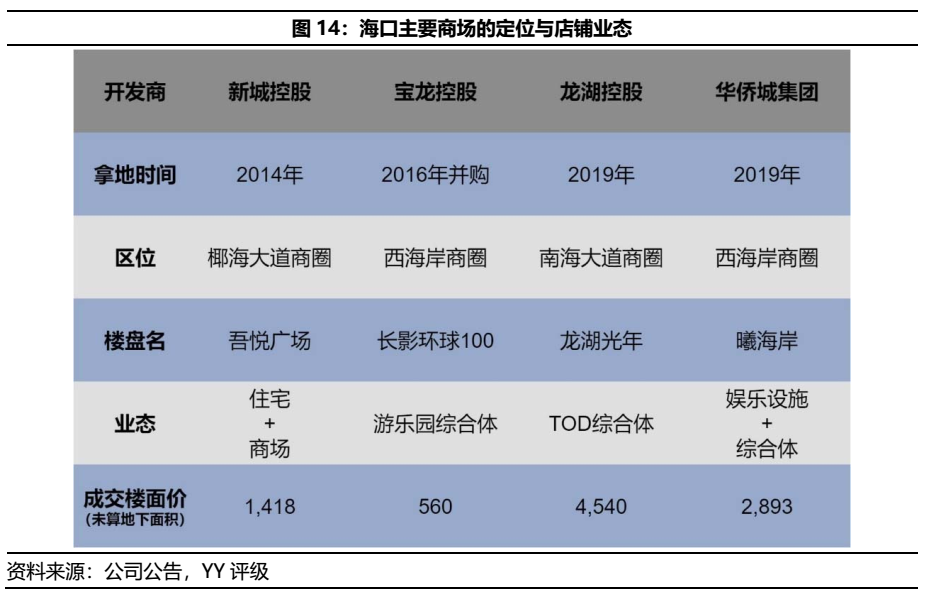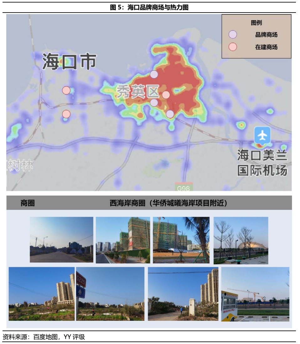 不同于一線城市核心物業,三線城市的自持物業往往被視為開發商勾地手法下的配套產物,多為住宅項目的邊角料,不具備價值。但隨著新城和龍湖等開發商在三四線城市的大量自持物業開盤,此類區域的商業競爭格局與策略亦勢必探討之,關注其定價合理性。因而借春節期間得以在海口實地調研,觀察市內商業物業情況。