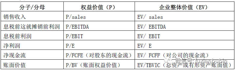 價值比例在可比企業與待估企業的價值之間建立了一座橋梁,能夠更好的反映價值,則取決于選取價值比率的關鍵。目前常采用的價值比率類型主要包括如下幾類:
