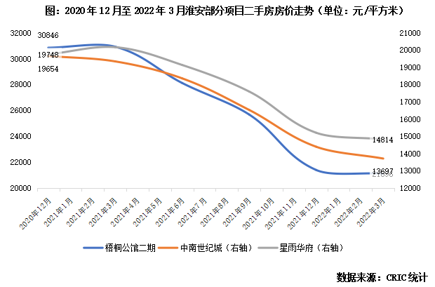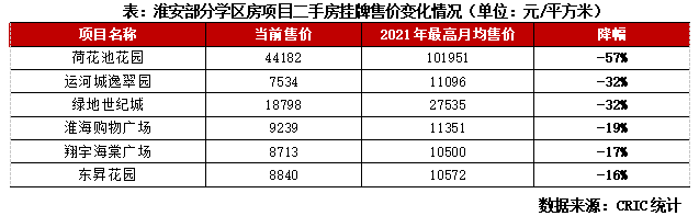 以學區房為代表的二手房房價是淮安樓市預期和購房情緒的關鍵。2021年8月起二手房市場出現劇烈調整,學區房價格腰斬。