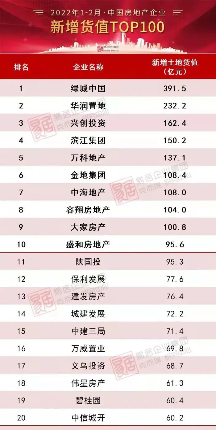 3月初,克而瑞發布了2022年1-2月房企新增貨值TOP100榜單。很多地產老炮們都會有種才疏學淺的感覺:這份百強榜單上的大多數房企居然都都是第一次聽說。在這份榜單上,房地產銷售排行榜榜首的碧桂園也僅位列19位,龍湖位列24位,旭輝位列51位,新城位列63位。至于以前我們熟知的閩系房企、粵系房企、西南房企、北派房企,大都只派了代表來,湊不出一支隊伍,或者說,他們該整合成一支隊伍,民企代表隊。與之相對應的,則是地方國企的強勢崛起,各種城開、城投、建設、投資公司魚貫而來,只是尚無法分清他們是來托底客串,還是趁機抄底的。“今天的土儲,就是明天的規模;有了規模,才有話語權”。如今這房地產行業,新桃換舊符,不止游戲規則變了,連選手也都變了。