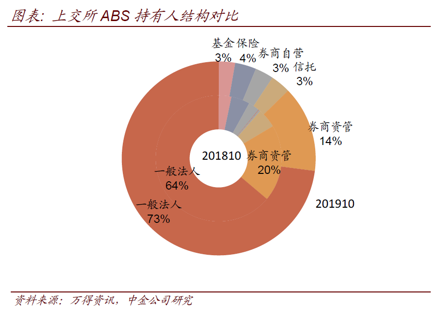非法人產品中,銀行理財是最重要的投資群體。盡管數據上來看銀行理財的持有量僅為10%。但實操中,部分銀行理財通過通道來持有ABS品種,因此這部分持倉被統計到了“其他非法人產品”中。