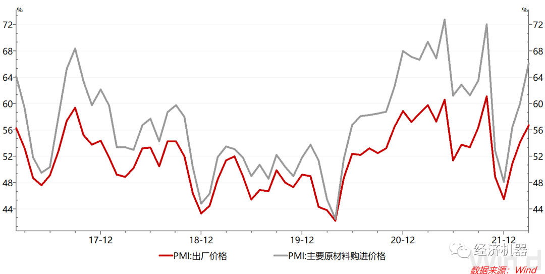 圖6 PMI出廠價(jià)格與原材料購(gòu)進(jìn)價(jià)格