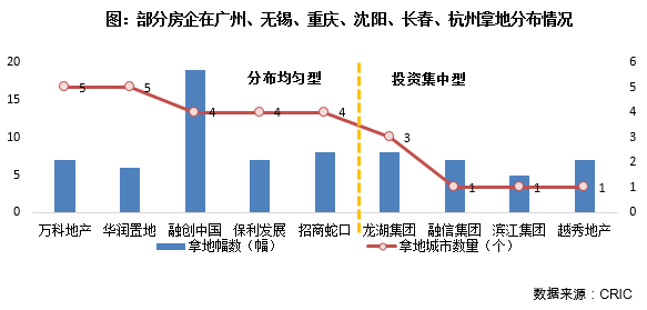 除10強房企以外,還有龍湖、融信、濱江、越秀等房企積極拿地,投資額也超過百億,整體來看以區域深耕型房企為主,這與本輪集中拍地的城市恰好為其深耕的核心城市不無關系。