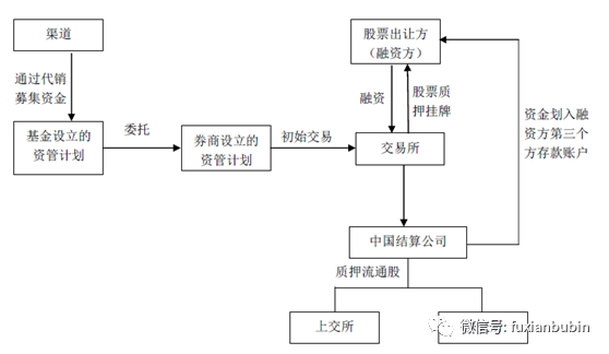 考慮到基金公司和基金子公司不能托管股票,所以開展上市公司股質業務一般采用三方監管模式,具體交易結構如下: