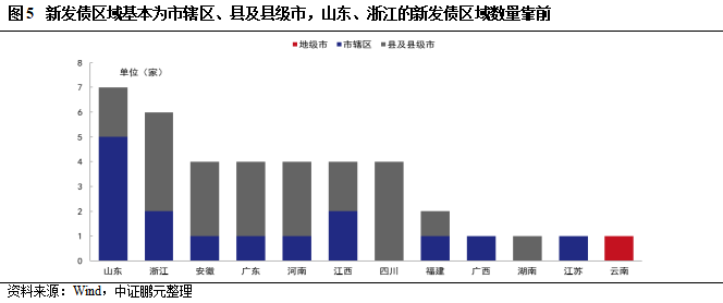 從新主體債券發行規模占區域城投債發行總額的比重來看,浙江、山東、安徽、上海、河北的新主體債券發行規模占比較高,對于區域城投債融資貢獻更大。