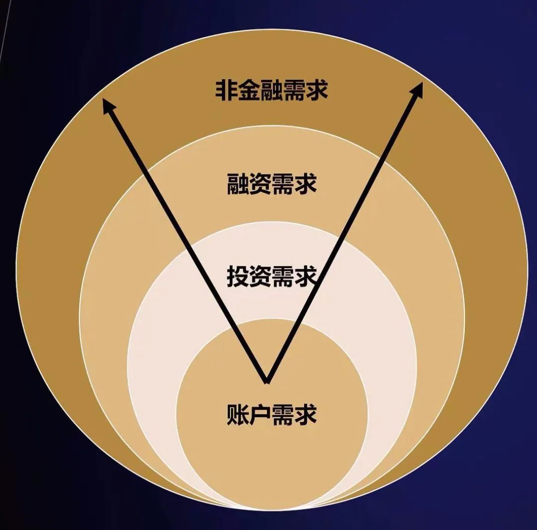 而在最基礎的賬戶層面,就是以銀行賬戶為基礎打通C端客戶,實現集團內客戶統一管理,我們可以想象未來會形成一個客戶一個資配視圖,多個產品、多個服務人員、乃至多個集團內公司綜合服務,而整套服務是一體化的,彼此續接斷點、彼此協同共享——
