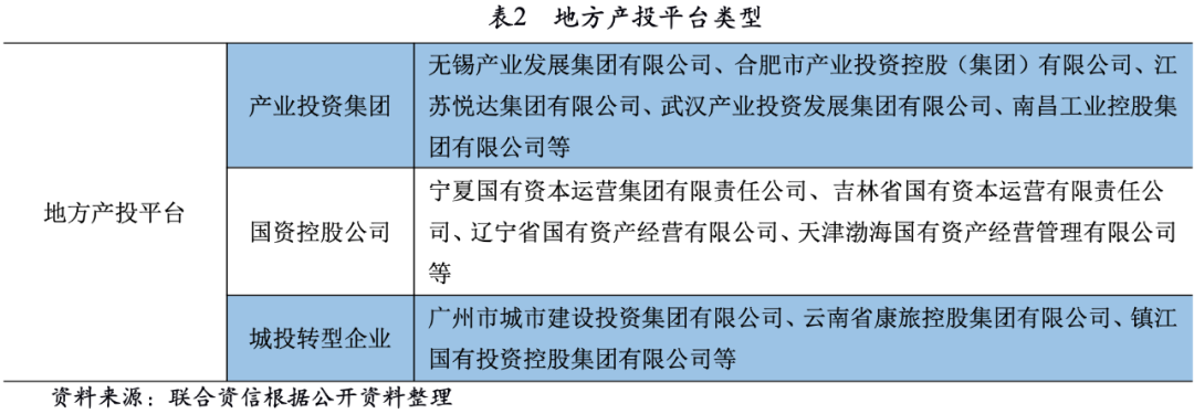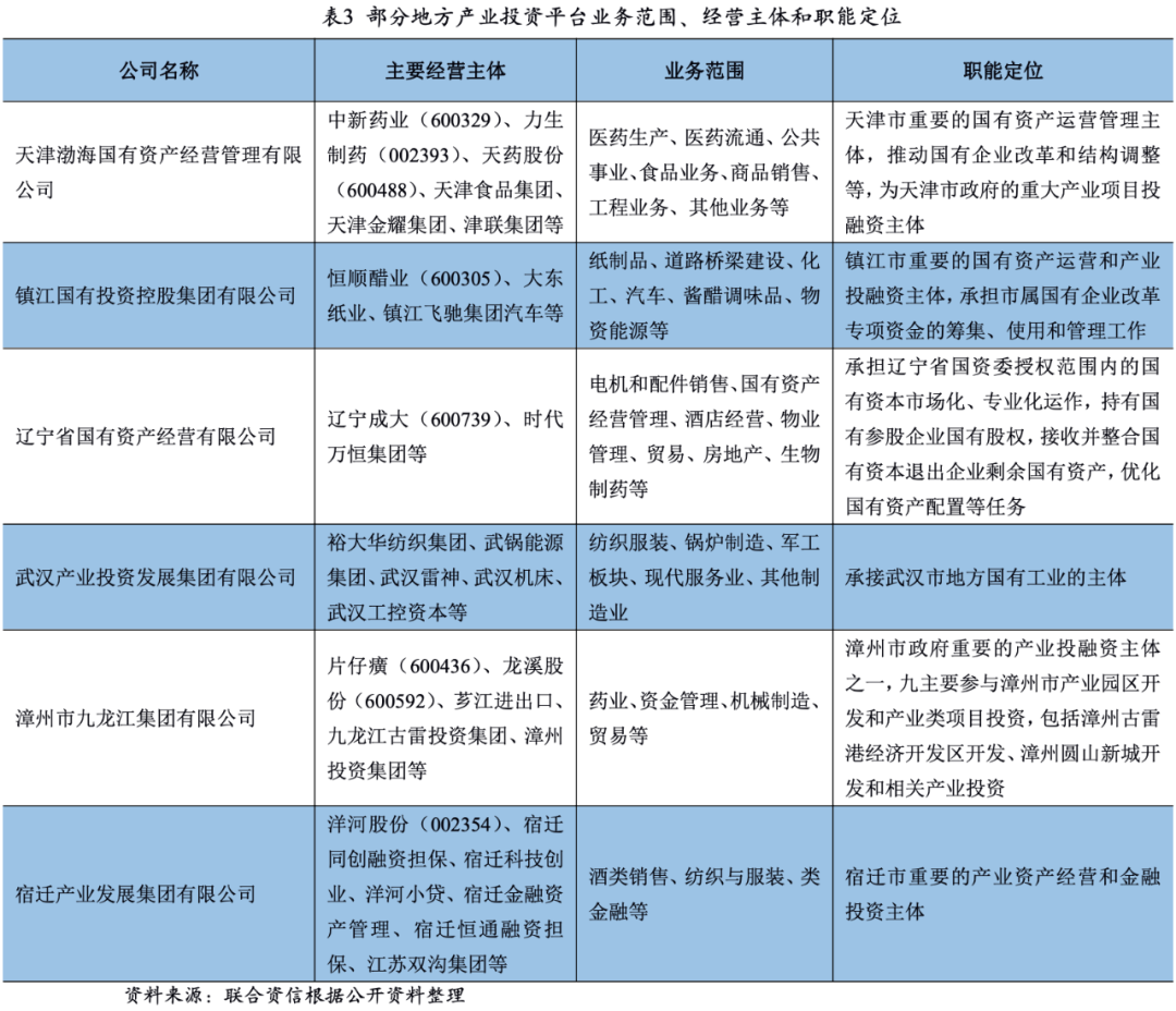 隨著國企改制、國有資本運營公司的組建和城投平臺的轉型,地方產投平臺的數量近年來不斷增加。不同于業務集中度高的經營性國有集團和典型的城投平臺,地方產投平臺通常是指建立在當地政府劃撥的經營性資產之上,結合地方產業資源和產業發展規劃,承擔引導當地重點產業投資發展、政府指定項目投融資、國企混改以及國有資產增值保值等特殊職能的地方國有企業。