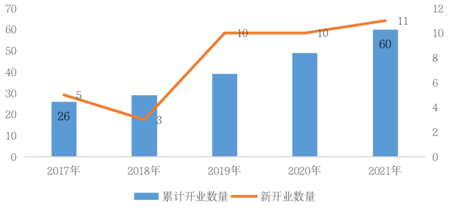 圖:龍湖2017-2021年購物中心開業情況
