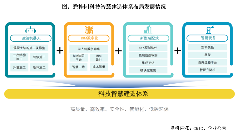 在以地產為核心主業的同時,碧桂園也圍繞客戶全生命周期需求,布局全產業鏈。持續提升全周期綜合競爭力,推進全生態可持續發展,以科技賦能、全競提升。其中,科技智慧建造包括博智林機器人、現代筑美家具,涵蓋了智慧施工、新型裝配式、建筑機器人、BIM數字化以及上下游產業鏈。此外,還有千璽機器人集團、碧優選、碧桂園現代科技農業等增值服務。我們認為,科技賦能下的多元產業的布局,未來將對地產開發主業形成更強的協同效應,也有望為碧桂園帶來更大的長期發展空間。