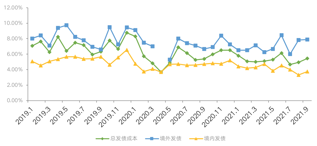 圖:2019-2021年9月房企單月融資成本情況