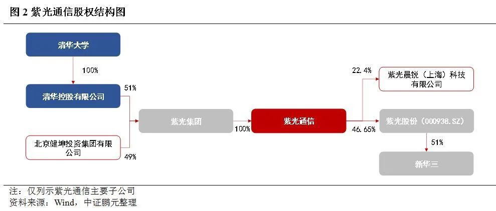 紫光通信,為紫光集團有限公司(簡稱“紫光集團”)的核心子公司,持有上市公司紫光股份52.13%的股份。紫光集團為清華系核心企業,控股股東是清華控股,實際控制人是教育部。紫光集團主要業務為IT及相關設備制造與服務、電子元器件及設備制造、能源環境和教育培訓服務四大業務板塊。其中IT及相關設備制造與服務由紫光股份及其下屬公司新華三集團負責,2019年實現相關收入537.02億元,占主營業務收入的70%,業務相對集中。2020年11月,紫光集團因未能如期償還“17紫光PPN005”而發生首次違約,截至2021年4月末,紫光集團已違約債券9只,違約規模累計接近70億元,存續的尚未違約的債券3只,債券余額37億元。