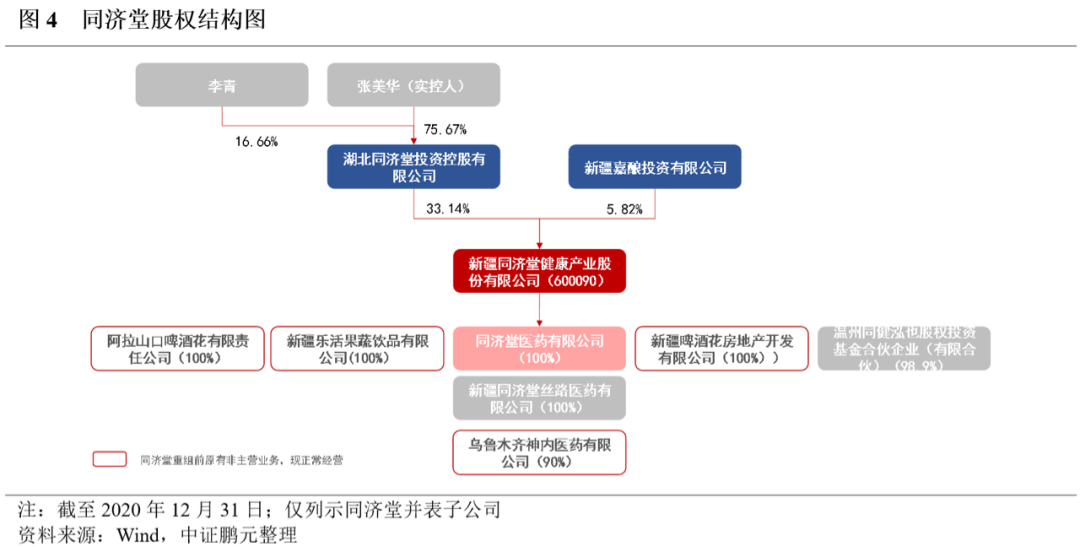 同濟堂醫藥原為湖北同濟堂投資有限公司(簡稱 “同濟堂控股”)控股的子公司,2016年,同濟堂控股將同濟堂置入新疆啤酒花股份有限公司,實現借殼上市。新疆啤酒花股份有限公司,為新疆較早的上市公司之一,原主營業務啤酒釀造銷售、果蔬飲品加工等,與同濟堂控股進行資產重組后更名為新疆同濟堂健康產業股份有限公司(簡稱“同濟堂”),出售持有的烏蘇啤酒全部股權(占該公司股權的50%)給嘉士伯,轉而持有同濟堂100%的股份,變更為醫藥流通企業。目前,同濟堂的主要資產、負債集中于同濟堂醫藥,盈利和經營活動凈現金流亦主要來源于同濟堂醫藥,占比超過90%,其面臨的外部融資環境等亦高度一致,因此同濟堂的償債能力與同濟堂醫藥的償債能力變動趨勢亦基本一致,主體級別于2021年4月同步下調至CC。