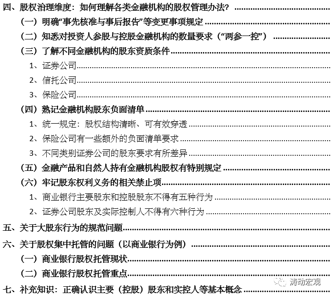 四、股權(quán)治理維度:如何理解各類金融機(jī)構(gòu)的股權(quán)管理辦法