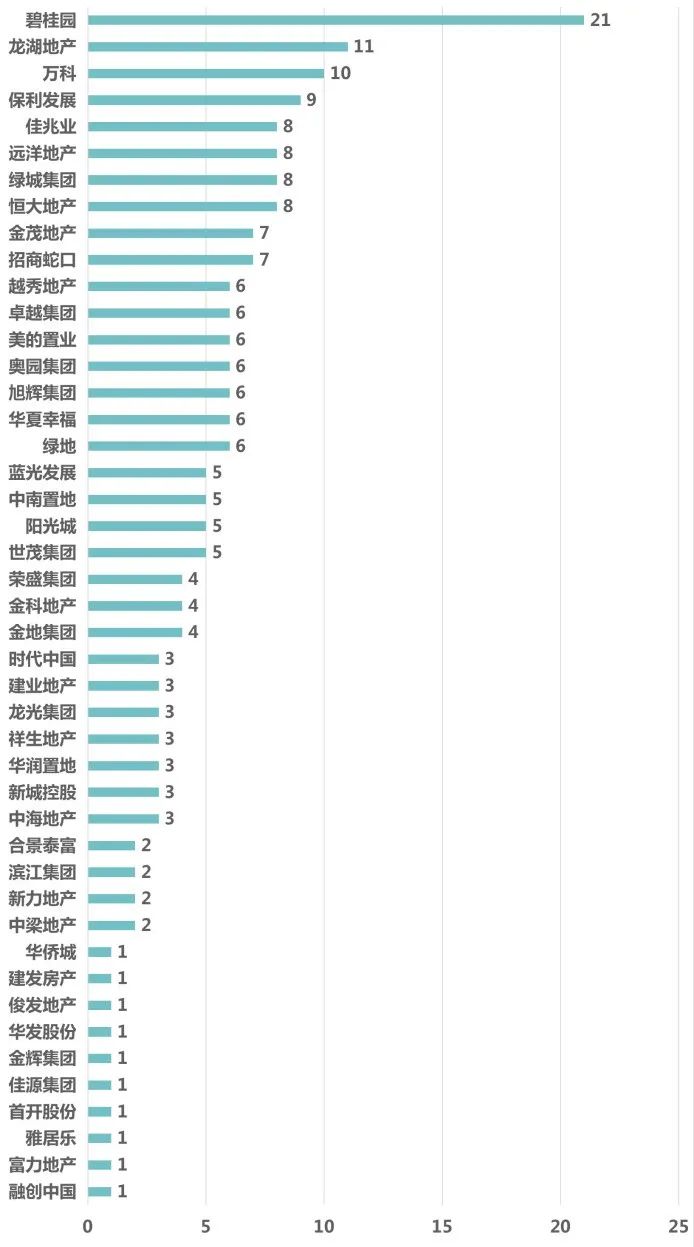 TOP50房企已投資科技公司數量(家)